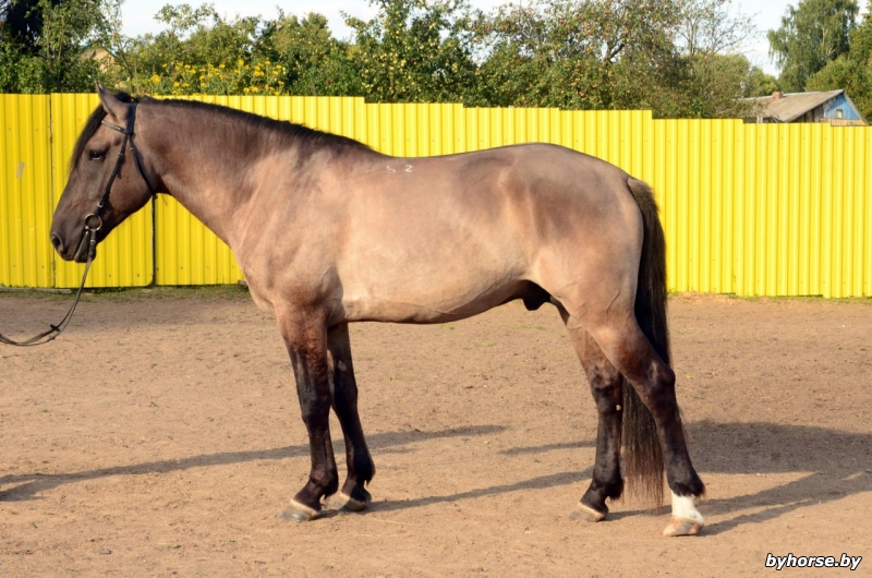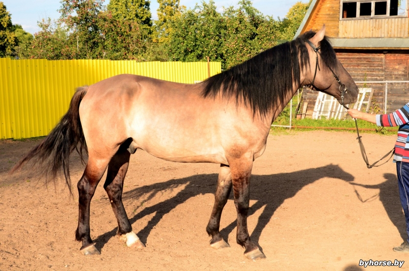 Гусляр (Горлица - Шмель) линия Баяна, чистопродный жеребец белорусской упряжной породы, мышастой масти.