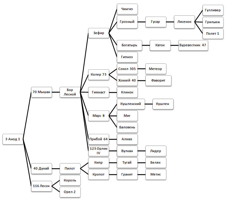 16 Бор Лесной (70 Мышак — Буланка)—крупный, гармоничный, породный жеребец. Высоко оценен на ВДНХ СССР. Более 70 % его потомства элитные и I класса. Продуцировал в конном заводе «Заречье» Смолевичского района Минской области. Хорошие итоги получены в подборе с матками линий 81 Орлика, 58 Лесного Орла, 34 Голубя. Его сын, элитный жеребец 123 Орлик IV (16 Бор Лесной — Медуза), являлся ведущим производителем на ферме совхоза «Стайки» Вилейского района. Использовался в различных подборах с целью выявления лучшей эффективности, но чаще всего практиковалось более удачное спаривание с крупными матками линии 81 Орлика.95 Алмаз (3 Анод — 147 Ласка) — типичный продолжатель линии, полученный при тесном инбридинге на родоначальника. Его промеры превышают требования стандарта линии и породной группы в целом, потомство элитное и I класса. В числе продолжателей были испытаны Орел II (95 Алмаз — Астра), Налет (95 Алмаз — 216 Нарочанка) и др.